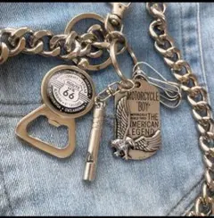 ウォレットチェーン シルバー 鍵笛付きアメカジ カラビナ バイカー