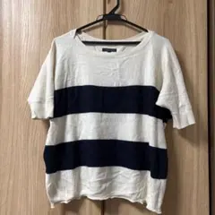 水色のリブ編みデザインの半袖ニット、サイズXS。