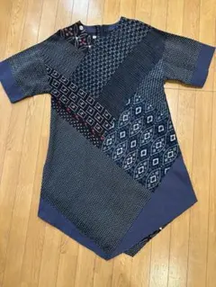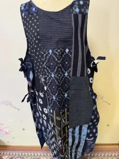 リメイク着物パッチワークジャンパースカート久留米書生絣他L