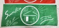 sumikaのWonder Bridgeデザインが施されたレッドタオル。