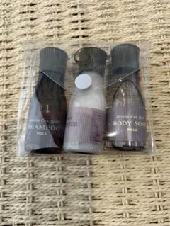 旅行に最適なシャンプー、コンディショナー、ボディソープのセット。各30mlで持ち運びに便利。