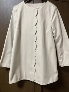 パールボタンや袖リボンの控えめな可愛らしさのあるコートです。