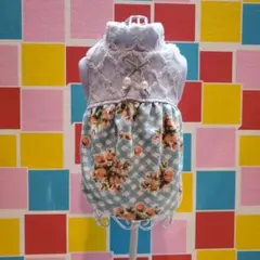 犬服 S 刺繍入りコットンとキルティングのタンクトップ 小型犬 ハンドメイド