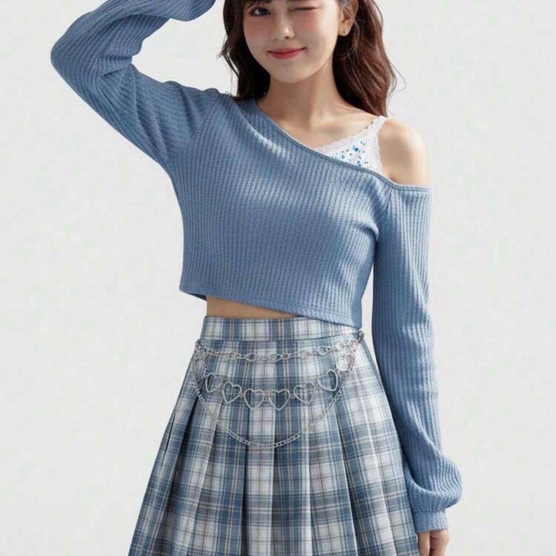 制服 プリーツスカート 水色 JK コスプレ チェック柄