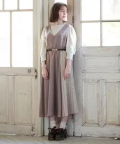 トップスの布帛部分は柔らかくとろみのある素材なのでカーディガンやアウターも羽織りやすいデザインです。