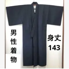 男物 単衣着物 ウール 100亀甲柄 青紺