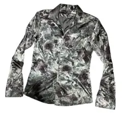 トルネードマートのシワ加工ボタニカルブラックドレスシャツです。上質なブラックの生地にシワ加工が施され鮮やかな花柄が目を惹く綺麗で上品な気品ある1枚です。