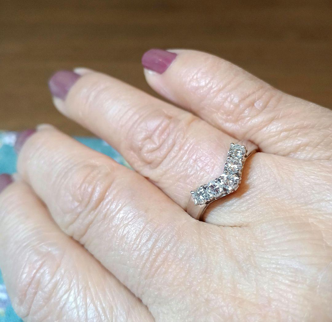 天然ダイヤモンドが、5ポイント入りのV字型プラチナリングです。