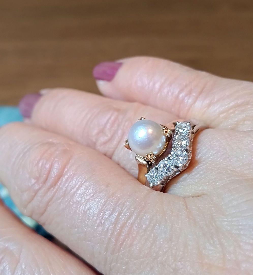 ダイヤ部分が大きめで、スッキリとしたデザインですので、単品はもちろん、他のリングとの重ね付けでも、大変見映えが致します。