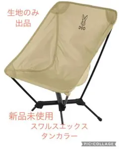 オリーブグリーンのDOD製アウトドアチェア、ウサギのロゴ付き。