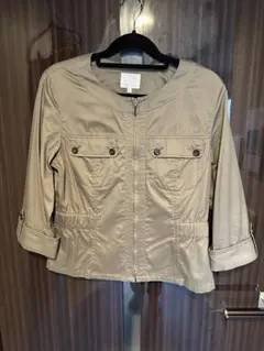 自由区 麻 コットン ノーカラージャケット ベージュ38 C81