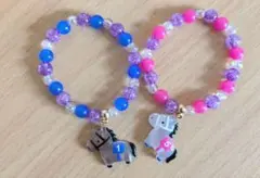 馬 メンコ & 馬蹄 チャーム(木製)青