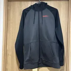 NIKE ナイキ ビックロゴプリント 左袖NIKEロゴ フルジップパーカー 黒