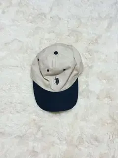 ベージュのコットンキャップ、ロゴ刺繍付き。