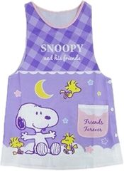 スヌーピーとウサギの可愛いプリントが施されたピンクのエプロン。