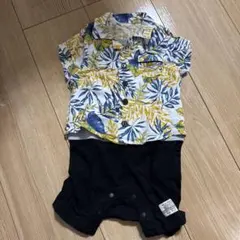 宇宙とヘリコプターの柄が特徴的なロンパース。