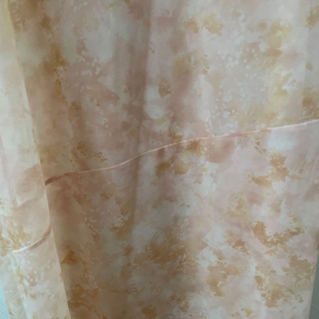 透け感のあるピンク系キャミワンピース、Vネックデザイン。