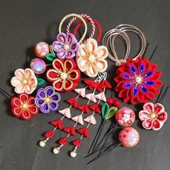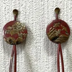 葉と実のデザインが特徴的な金属製の長い髪飾り。