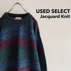【大人気】柄ニット 総柄 ダーク系 古着 ノルディック柄 Mサイズ