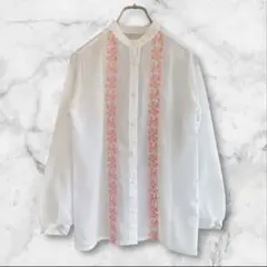 チャイナブラウス 花柄 総刺繍 ホワイト 9号 チャイナボタン チャイナトップス