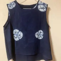 古布風呂敷リメイク ベスト 濃紺✖️白 オリエンタル柄 綿 小さめ7〜9号サイズ