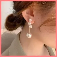 パールピアス ダブルパール 3way 大きいパール 真珠 パール 大粒