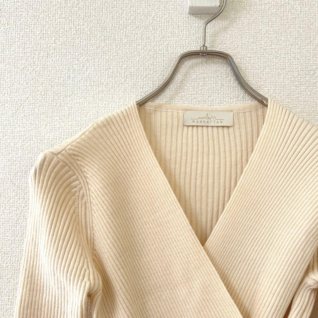 マンハッタン ニット リブニット Vネック クロスデザイン 長袖 フィット感 F