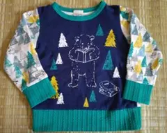 真っ赤なトレーナーに、サメのプリントがインパクト大です。