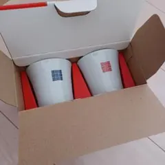 波佐見焼清山窯二重構造の赤と青の陶器カップ 2個セット