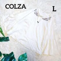 コルザ トップス カットソー ロングTシャツ ハイネック ボーダー ベージュ M