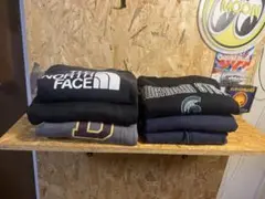 グリーンのTHE NORTH FACEパーカー、XSサイズ、花の刺繍付きデザイン。