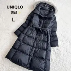 UNIQLO ダウンコート Lサイズ ブラウン フード フェイクファー ベルト