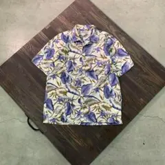 ヴィンテージ 半袖シャツ 総柄シャツ 綿100% ボタニカル プリント リーフ ココナッツボタン 大きいサイズ