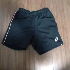 アシックスの黒いバレーボールパンツ、ウエストゴムとポケット付きで快適なフィット感。