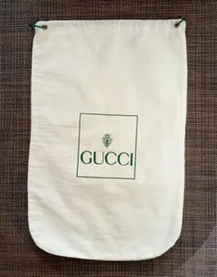 GUCCIのベージュリネン製小型ポーチ、リボン付きデザイン。