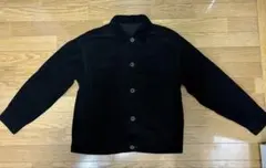ブラックのコーデュロイジャケット、カジュアルスタイルに最適。