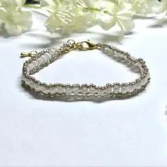 紫と白のビーズを使用したエレガントなブレスレット、アジャスター付きでサイズ調整可能。