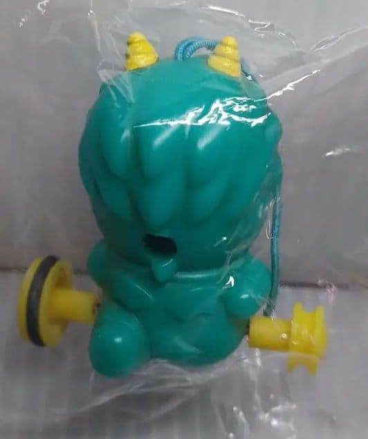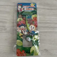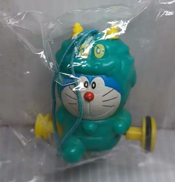 ドラえもんのキャラクターを模したストラップ、青色のプラスチック製で約5cmのサイズ。