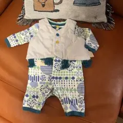 フリース素材のイエローベースのひよこデザインロンパース、70サイズです