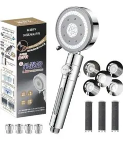 シルバーの流線型デザインで、バブル機能が付いたシャワーヘッドです。