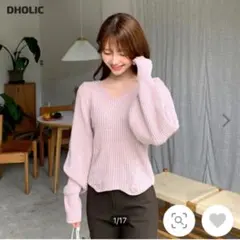 dholic ゴールドボタンパフスリーブニット ベージュ