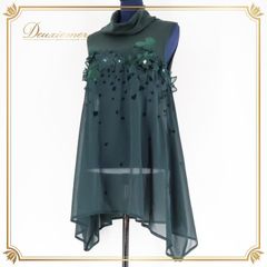 『新品未使用』⭐️トクコプルミエヴォル⭐️こげ茶色青い柄袖なしチュニックワンピース❣️