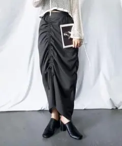 特別セール 新品 シャーリングリボン ギャザースリットスカート