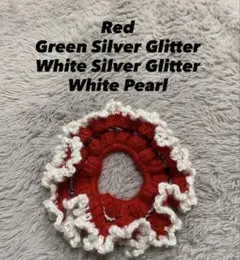 シュシュ 編み物 ハンドメイド かぎ針編み 手編み ヘアアクセサリー 白 緑