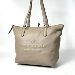 【美品】ケイトスペード 大容量 レザートートバッグ スペードフラワー グレー
