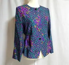 昭和レトロ花柄シャツ 長袖柄シャツ くるみボタン レトロポップ ヴィンテージ
