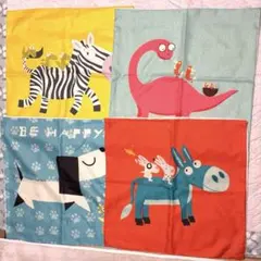 カラフルな葉のデザインのクッションカバー、リネン風生地使用。