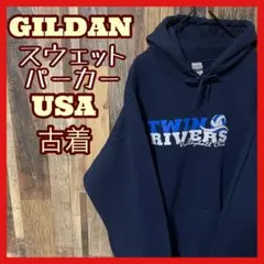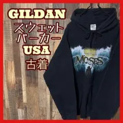 ギルダン イーグル デカロゴ スウェットパーカー ブラック 黒 L 古着
