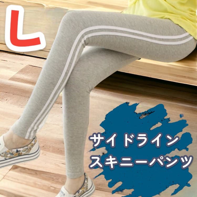 L スキニー レギンスパンツ サイドライン レギンス ライン入り ストレッチ 灰