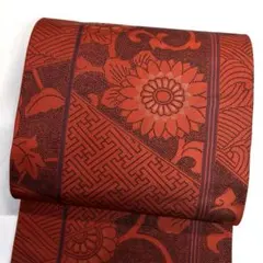 京袋帯 正絹 紬 花模様 大輪 着物 062t